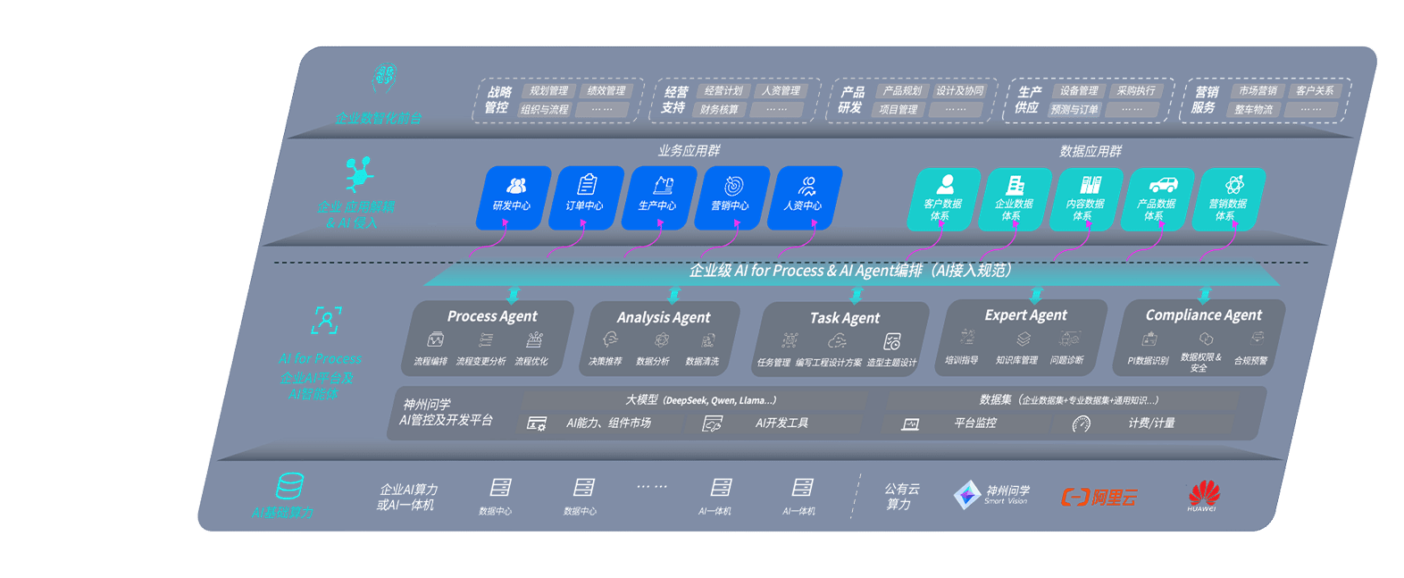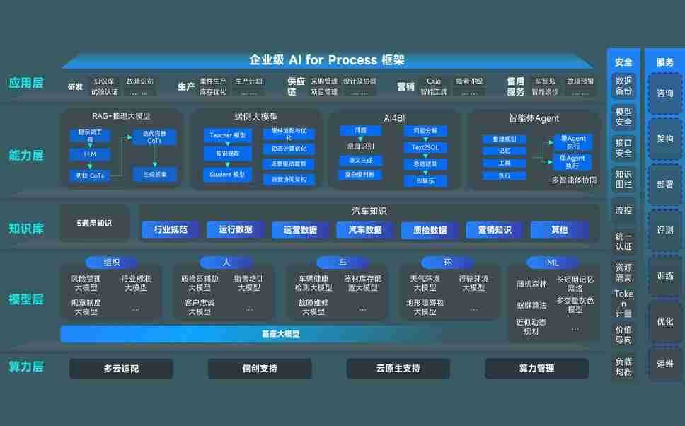 端到端的一站式AI工作空间深度融合了从企业战略规划到日常经营的全流程业务板块,,定向解决车企内部领域多、、、部门多、、链条长、、场景碎片化等难题,,,,支持车企快速构建以AI为核心的生产力写作体系,,,,实现任务执行与AI能力的无缝集成与交互